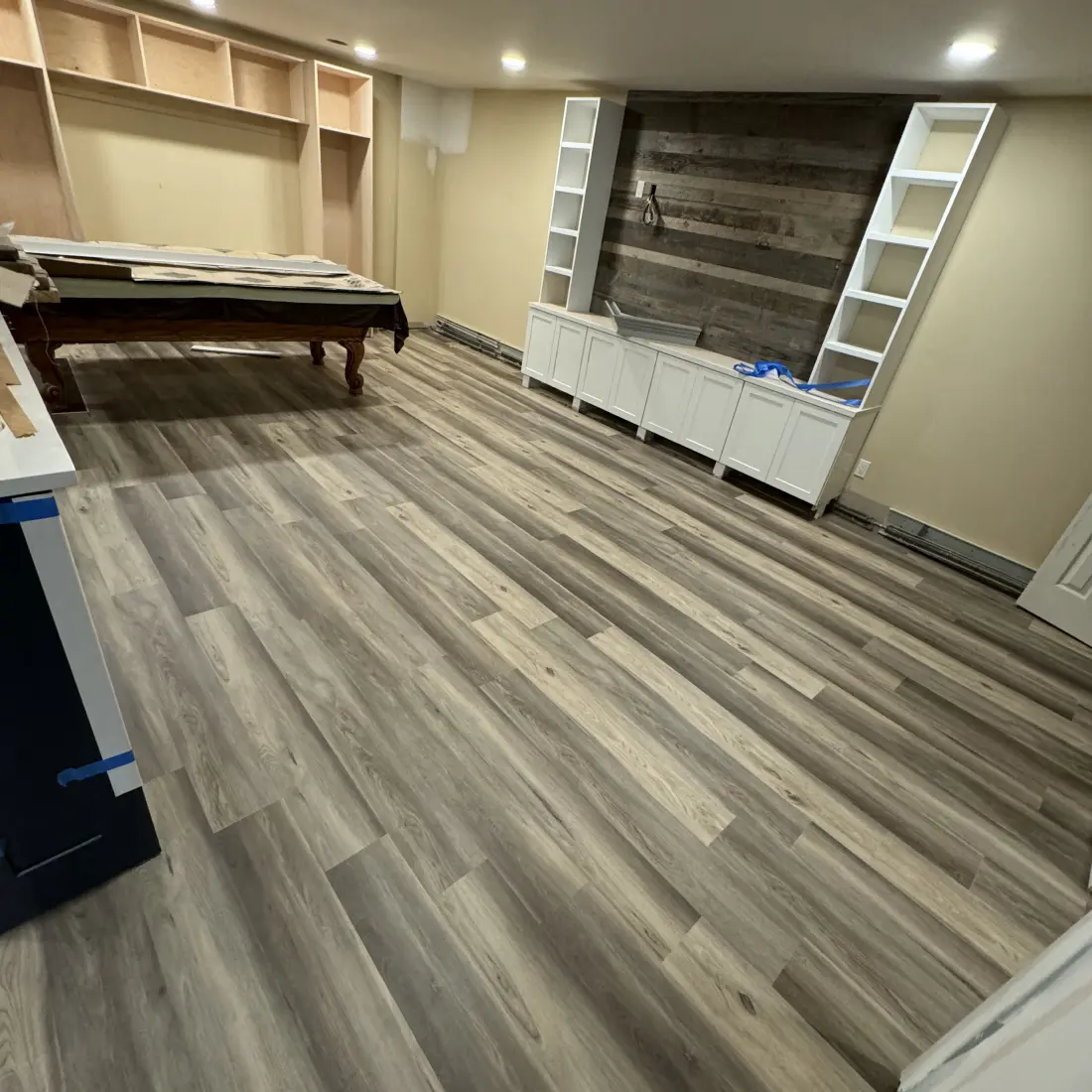 Our installation process begins well before the first plank hits the floor. We start with a thorough subfloor assessment — checking for moisture, levelness, and structural integrity — because a floor is only as good as the foundation beneath it.